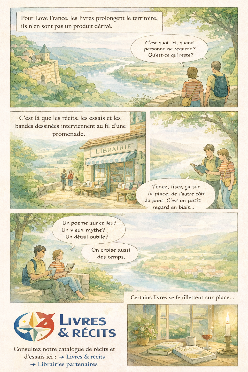 Love France rassemble des récits, des essais, des bandes dessinées et des formes hybrides qui permettent de lire un lieu comme on l’habite : lentement, partiellement,